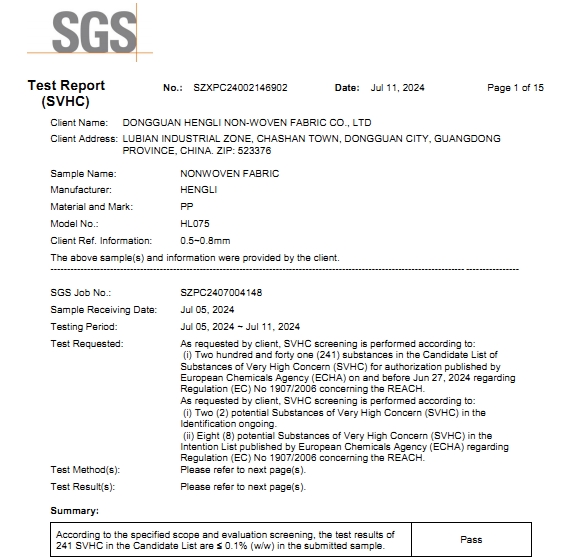 - 2024年SGS無紡布環(huán)保...